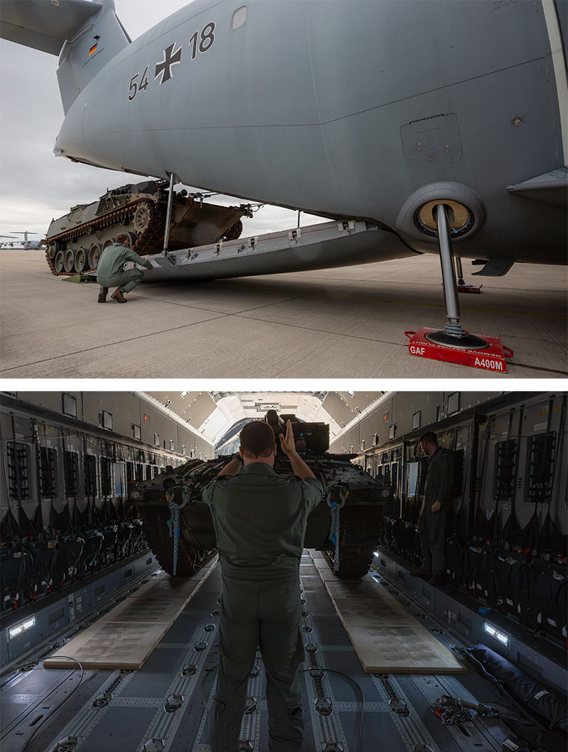 Der Airbus A400M ist das zentrale Transportflugzeug der Luftwaffe und für die Verlegung schwerer Ausrüstung konzipiert. Durch den erfolgreichen Transportversuch demonstriert die Bundeswehr ihre Fähigkeit, moderne Gefechtsfahrzeuge schnell und flexibel in Einsatzgebiete zu verlegen.